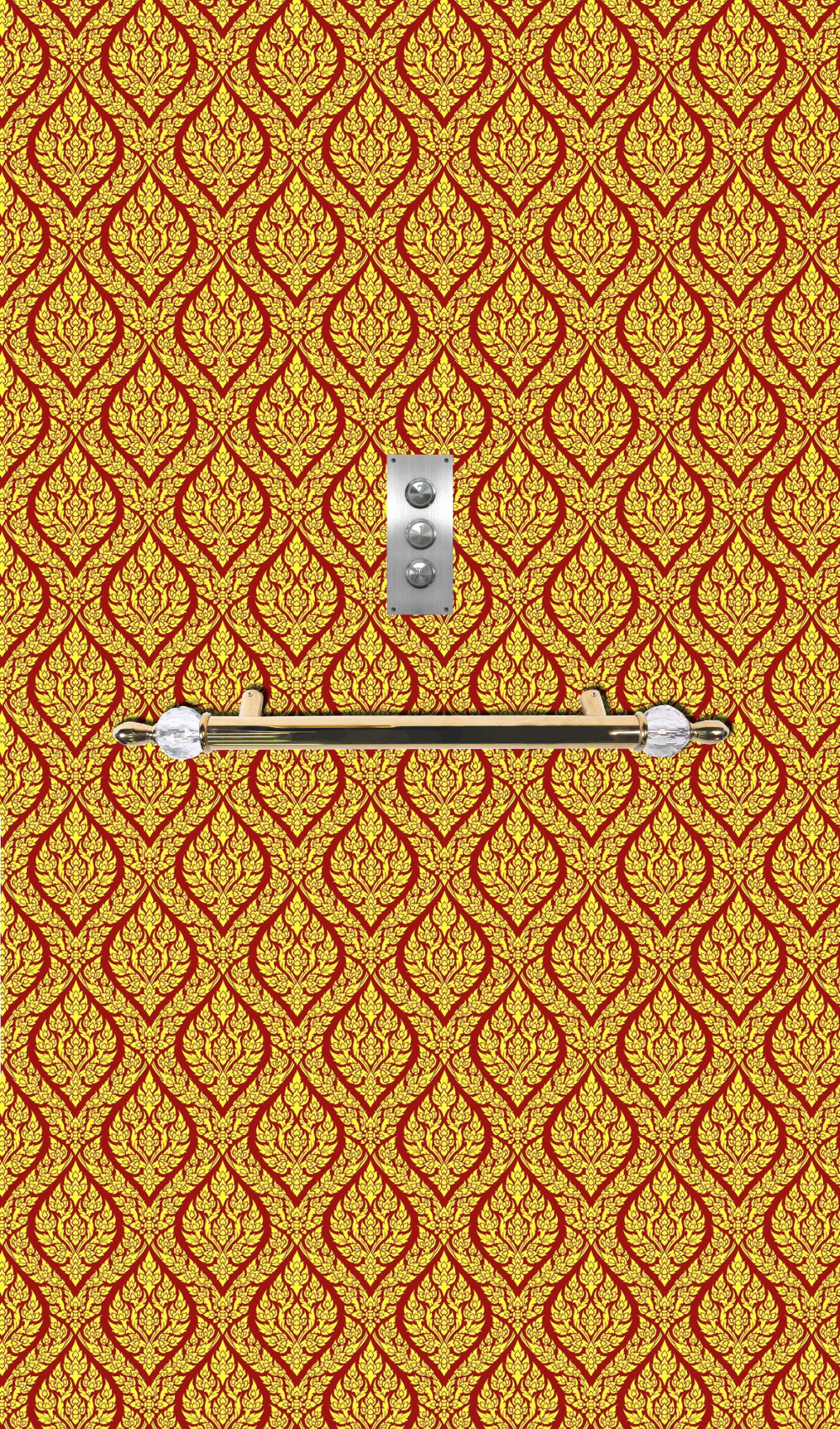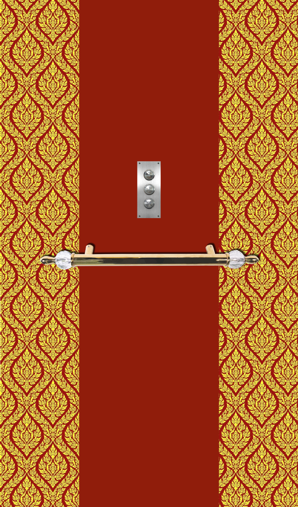ลายพุ้มข้าวบิณฑ์ สีทอง พื้นแดง