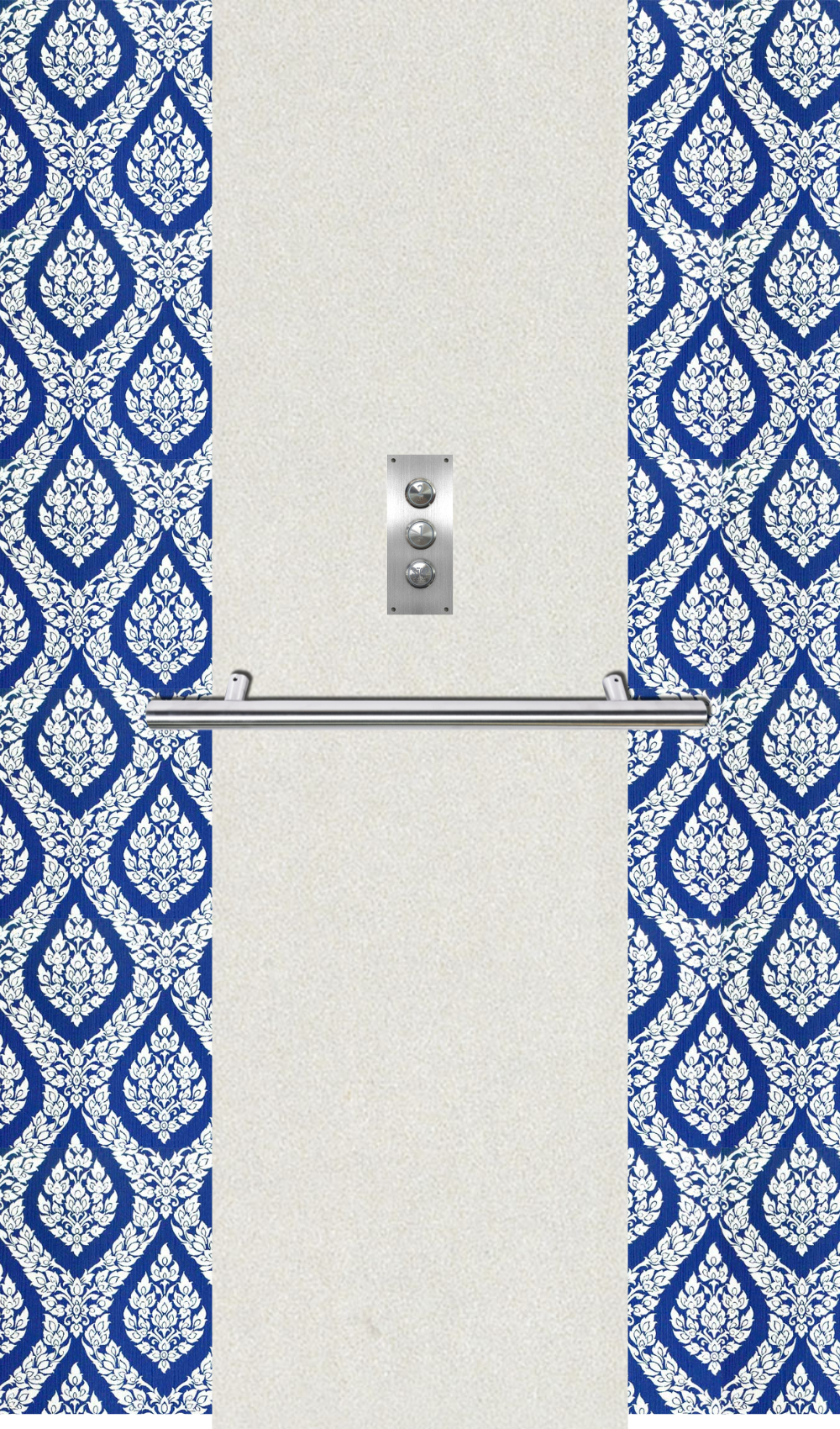 ลายพุ่มข้าวบิณฑ์ สีเงิน พื้นสีน้ำเงิน
