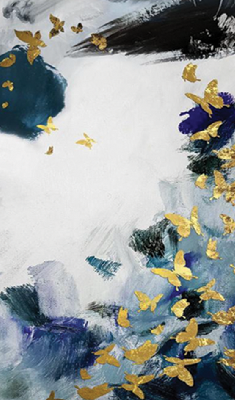 ลายดอกพุตตาล สีเหลือง พื้นทอง